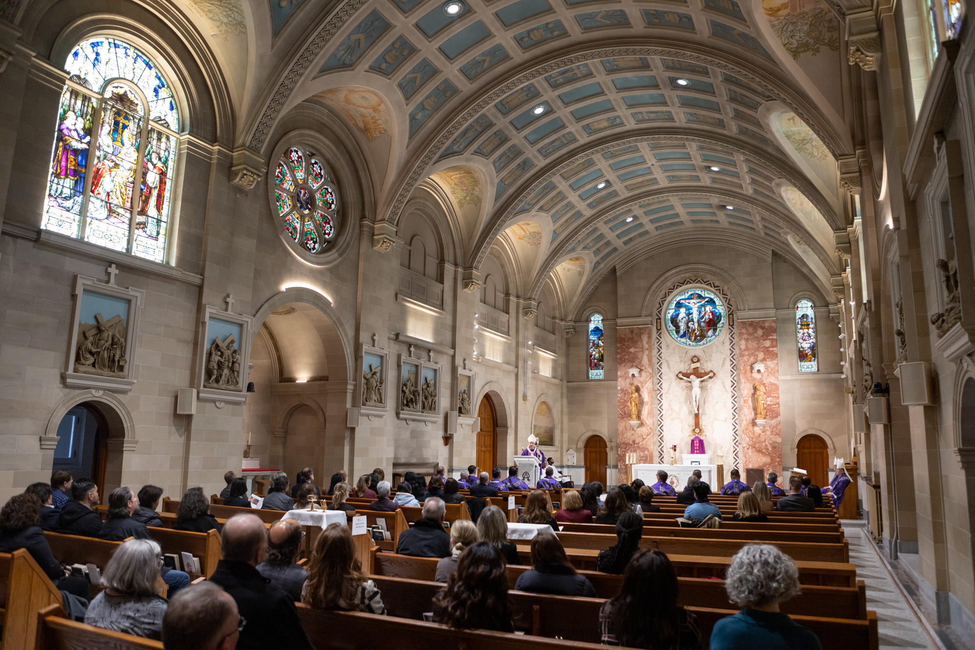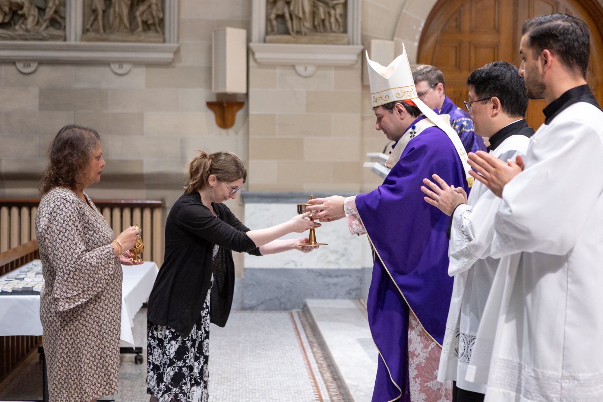 The celebration was held at the beautiful Chapel of St. Augustine’s Seminary of Toronto. Mass was celebrated by His Eminence, Frank Cardinal Leo, Metropolitan Archbishop of Toronto, joined by the Most Reverend John Boissonneau, Auxiliary Bishop of the Northern Region, the Most Reverend Ivan Camilleri, Auxiliary Bishop of the Western Region, and several priests of the Archdiocese.